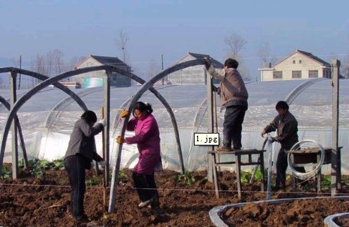 陜西省洛南縣古城鎮(zhèn)近日組織干部群眾利用農(nóng)閑時節(jié)建設(shè)設(shè)施蔬菜大棚,為農(nóng)民致富增收奠定堅實基礎(chǔ)。目前,已新建大棚20個,預(yù)計大棚蔬菜建成收益后可實現(xiàn)年收入30余萬元。圖為該鎮(zhèn)王村村民在技術(shù)人員指導(dǎo)下建設(shè)蔬菜大棚。 上一條:草苫換成棉被,蔬菜大棚保暖效果更好 下一條:新疆推廣深冬型溫室蔬菜大棚